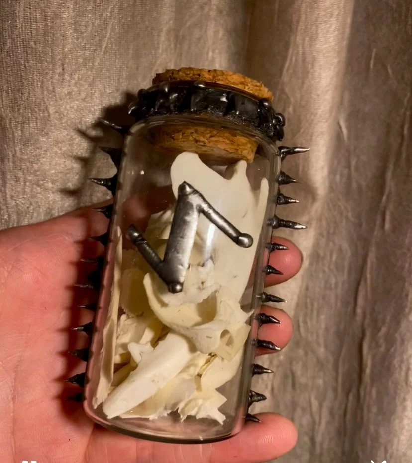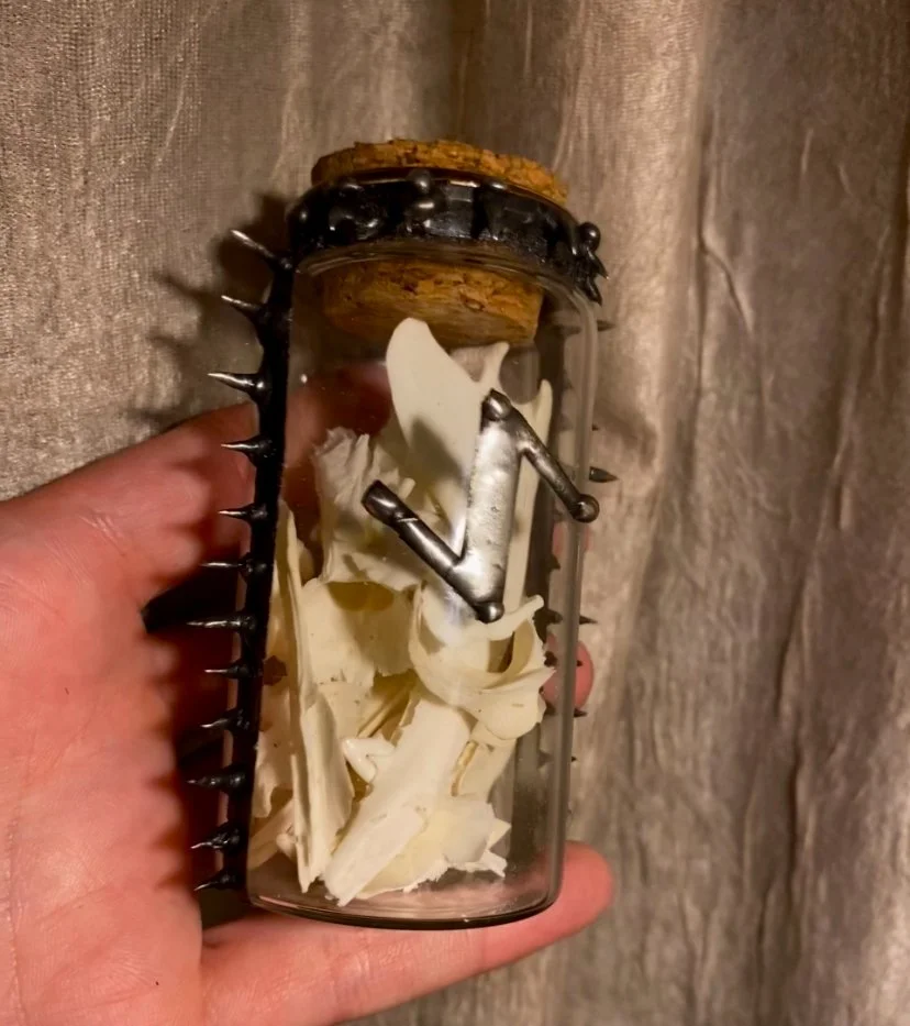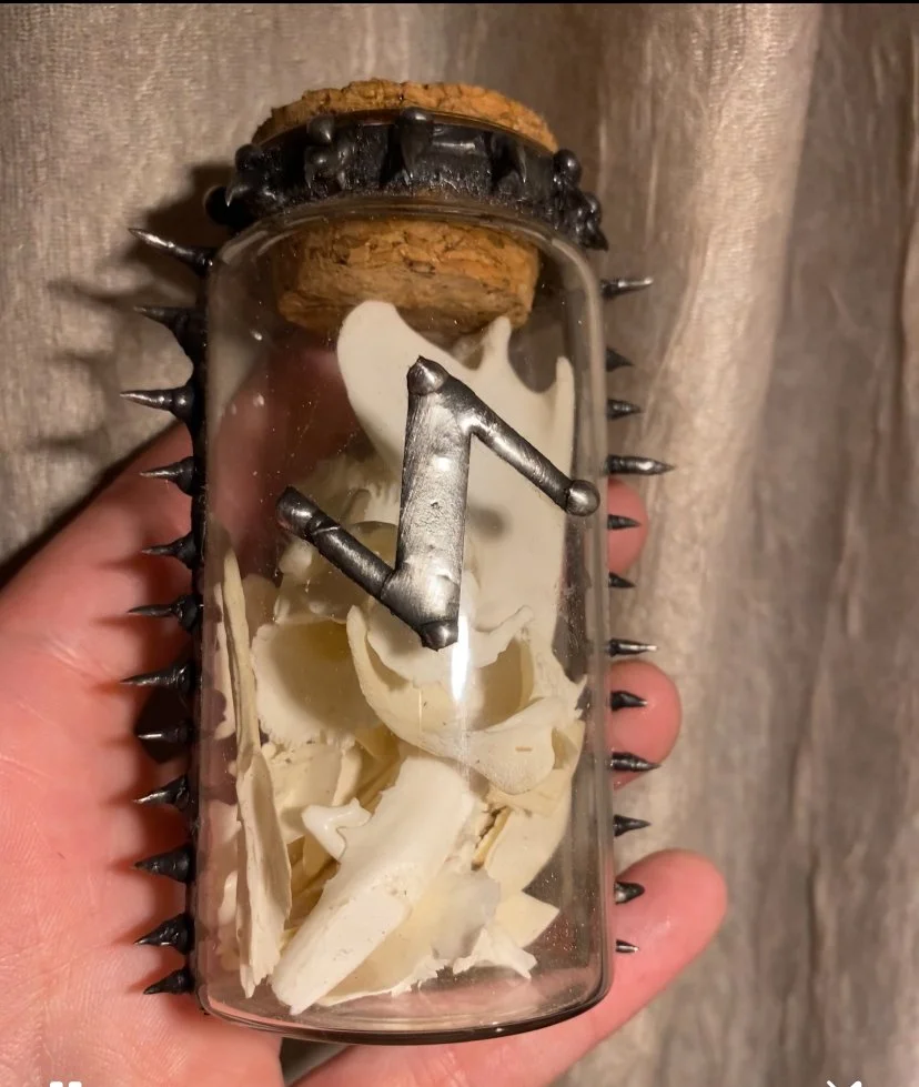 Categories: All Bone Decor High Frequency Chakra Oils 3rd Eye/ Crown Necklaces Runes/ Talismans Crystals Obsidian Garnet Tigers Eye Jasper Agate Moonstone Amethyst Quartz Labradorite Bone All / Eihwaz Spiked Bone Jar $0.00