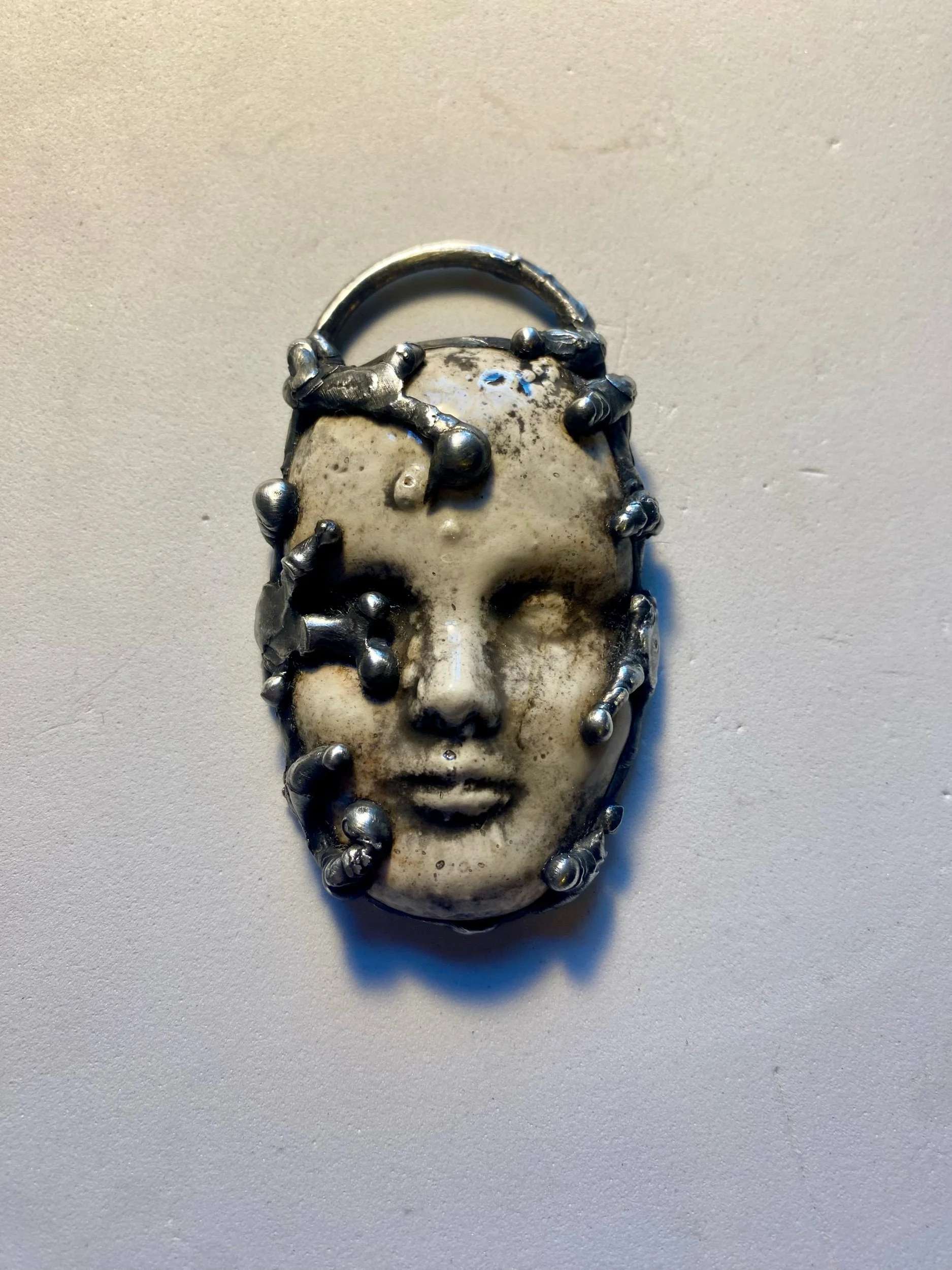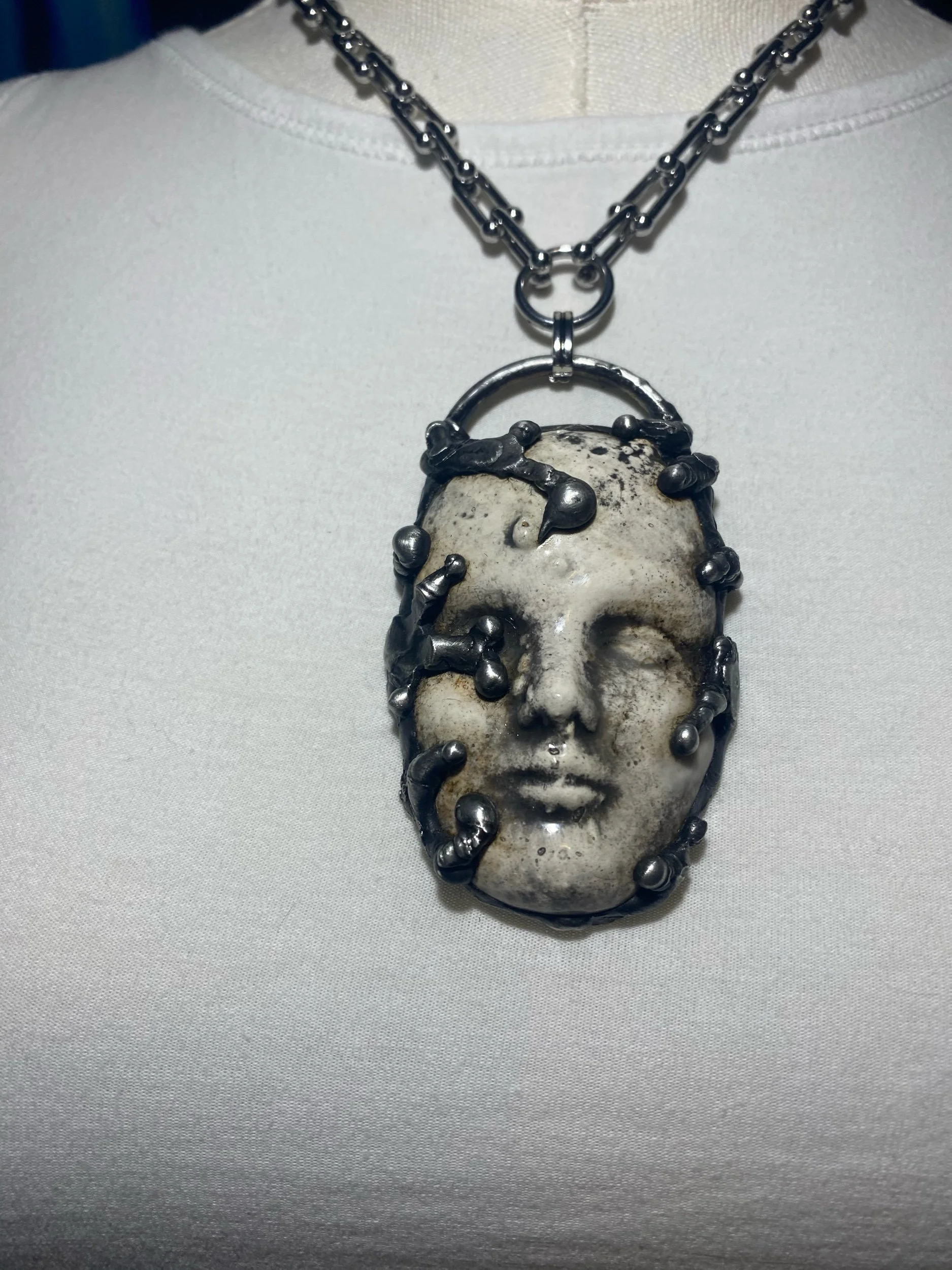 Unsettling Faces Collection Categories: All Products Room and Body Sprays Spiritual Decor Ethically sourced bones/ skulls alter pieces High Frequency Chakra Oils Jewelry Casted Metal Pendants Ethically sourced bones/ skulls Unsettling Faces Collection necklaces Body wear Runes/ Talismans Crystals Uranium Glass L:apis Lazuli Obsidian Tigers Eye Jasper Agate Moonstone Amethyst Quartz Labradorite All / Jewelry / Beautiful Decay Necklace $110.00