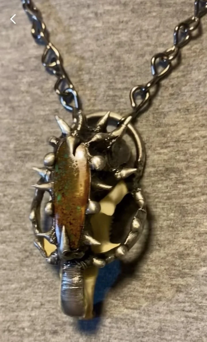 Store › Bobcat Mandibles with Rainbow Obsidian Image 1 of 4 Image 2 of 4 Image 3 of 4 Image 4 of 4 Bobcat Mandibles with Rainbow Obsidian $175.00 Add To Cart Added! Reviews Reviewer Name Review Date Star Rating Description Posted on Etsy Product Show More You Might Also Like Beaver mandible necklace with tooth! $90.00 Tektite with Golden Rutile Quartz $85.00 Possum skull with light blue Kyanite Necklace $175.00 Muskrat Skull with Variscite Necklace $160.00 Raccoon Mandibles with Amethyst cluster Necklace $165.00